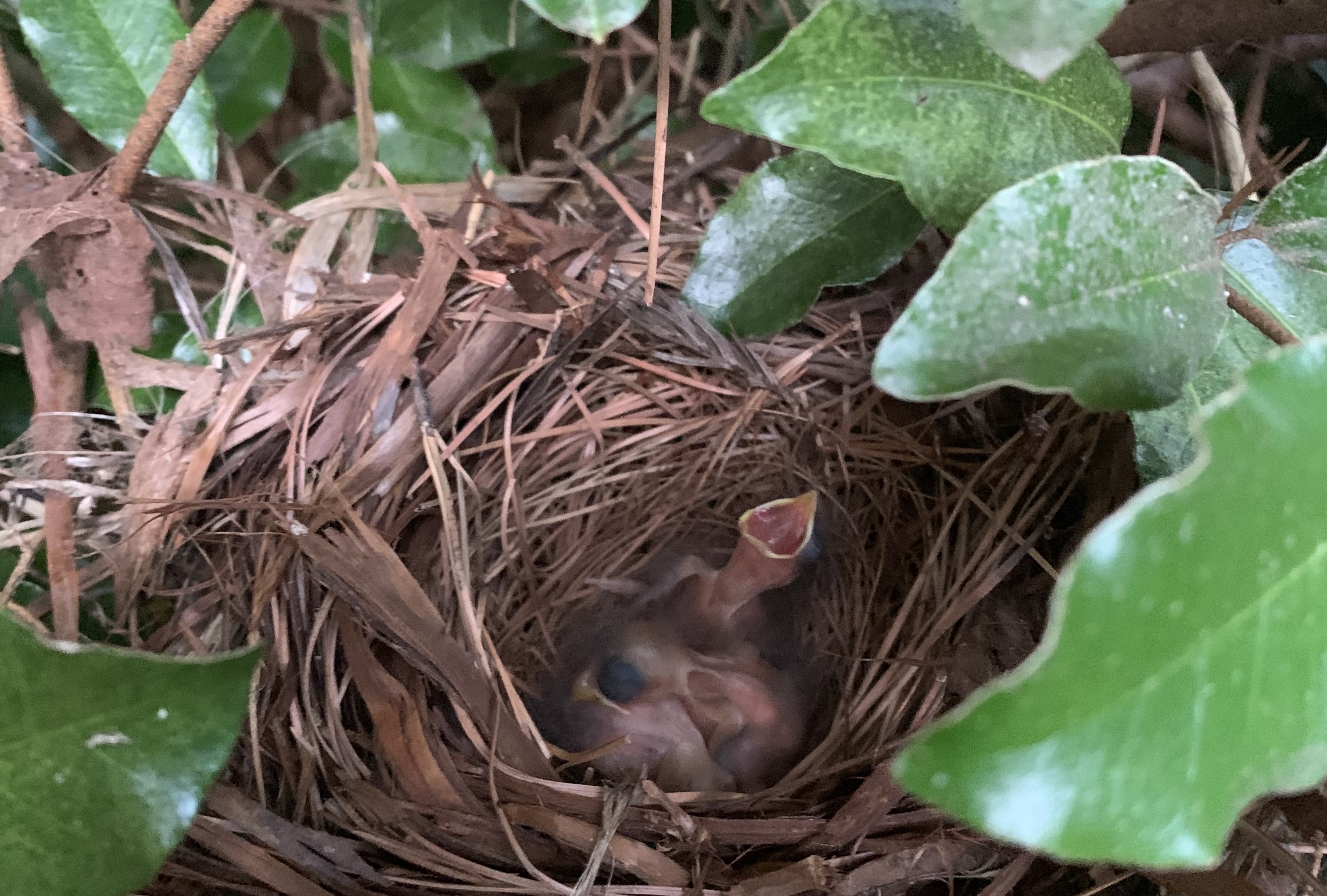 Baby Towhees in the Eleagnus